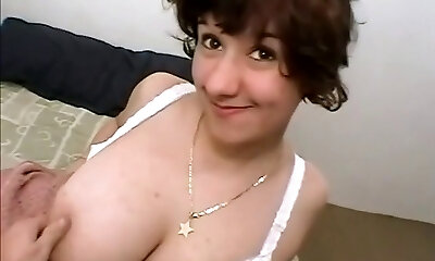 Mega busty brunette MILF sucked rock-hard dick of her stepson