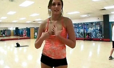 Slim busty stunner Darcia Lee hooks up with one dude at the gym
