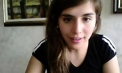19 year old busty webcam girl with innocent face touches her big innate ti